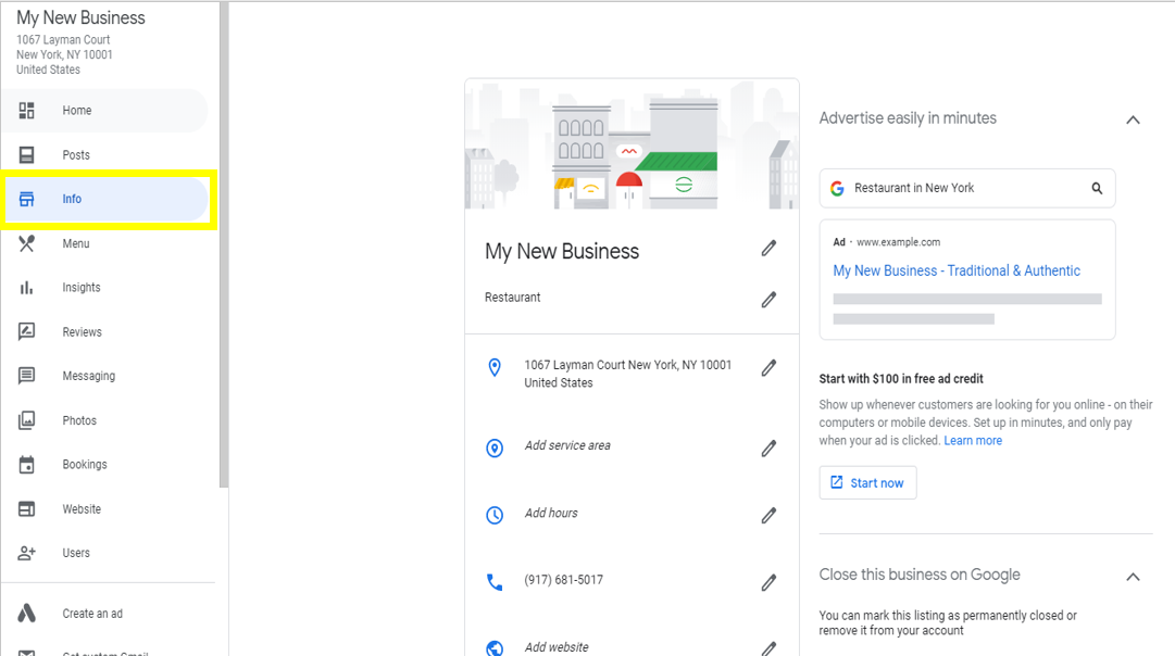 Go to the “info” section because here, you will be able to put all the necessary information related to your business. The dashboard will be based on the category you choose during the registration process. Make sure that you have a good list of related keywords for your business so that you can use them while you are writing descriptions or offers or services.